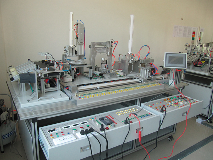 機(jī)電一體化技術(shù)實(shí)訓(xùn)設(shè)備是指機(jī)械技術(shù)、電工電子技術(shù)、微電子技術(shù)、信息技術(shù)、傳感器技術(shù)、接口技術(shù)、信號(hào)變換技術(shù)等多種技術(shù)進(jìn)行有機(jī)地結(jié)合,并綜合應(yīng)用到實(shí)際中去的技能實(shí)訓(xùn)綜合技術(shù),現(xiàn)代化的自動(dòng)生產(chǎn)設(shè)備幾乎可以說(shuō)都是機(jī)電一體化的設(shè)備。自動(dòng)化生產(chǎn)線實(shí)訓(xùn)考核系統(tǒng),可以培養(yǎng)和提高學(xué)生專業(yè)綜合能力,是一種重要的實(shí)訓(xùn)設(shè)備。自動(dòng)化生產(chǎn)線實(shí)訓(xùn)系統(tǒng)、基于PLC技術(shù)的自動(dòng)化生產(chǎn)線實(shí)訓(xùn)考核系統(tǒng),可以培養(yǎng)和提高學(xué)生專業(yè)綜合能力,是一種重要的實(shí)訓(xùn)設(shè)備。自動(dòng)化生產(chǎn)線實(shí)訓(xùn)系統(tǒng)整體包括自動(dòng)供料、檢測(cè)傳輸、檢測(cè)加工、自動(dòng)裝配、自動(dòng)分揀等工序,很好的將機(jī)械技術(shù)、微電子技術(shù)、電工電子技術(shù)、傳感測(cè)試技術(shù)、接口技術(shù)、信息變換技術(shù)、網(wǎng).絡(luò)通信技術(shù)等多種技術(shù)有機(jī)地結(jié)合。該系統(tǒng)中自動(dòng)分揀站的設(shè)計(jì)過程,包括系統(tǒng)硬件設(shè)計(jì)、PLC控制設(shè)計(jì)和程序設(shè)計(jì)方法�,F(xiàn)代化的自動(dòng)生產(chǎn)設(shè)備的最大特點(diǎn)是它的綜合性和系統(tǒng)性,在這里,機(jī)械技術(shù)、微電子技術(shù)、電工電子技術(shù)、傳感測(cè)試技術(shù)、接口技術(shù)、信息變換技術(shù)、網(wǎng)絡(luò)通信技術(shù)等多種技術(shù)有機(jī)地結(jié)合,并綜合應(yīng)用到生產(chǎn)設(shè)備中:而系統(tǒng)性指的是,生產(chǎn)線的傳感檢測(cè)、傳輸與處理、控制、執(zhí)行與驅(qū)動(dòng)等機(jī)構(gòu)在微處理單元的控制下協(xié)調(diào)有序地工作,有機(jī)地融合在一起。可編程序控制器(PLC)以其高抗干擾能力、高可靠性、高性能價(jià)格比且編程簡(jiǎn)單而廣泛地應(yīng)用在現(xiàn)代化的自動(dòng)生產(chǎn)設(shè)備中,擔(dān)負(fù)著生產(chǎn)線的大腦一微 處理單元的角色。因此,培養(yǎng)掌握機(jī)電一體化技術(shù),掌握PLC技術(shù)及PLC網(wǎng)絡(luò)技術(shù)的技術(shù)人材是當(dāng)務(wù)之急。而一套基于PLC技術(shù)的自動(dòng)化生產(chǎn)線實(shí)訓(xùn)考核設(shè)備可以模擬一個(gè)與實(shí)際生產(chǎn)情況+分接近的控制過程,使學(xué)習(xí)者得到一個(gè)非常接近于實(shí)際的教學(xué)設(shè)備環(huán)境,從而縮短了理論教學(xué)與實(shí)際應(yīng)用之間的距離。自動(dòng)分揀站需完成對(duì)上一單元送來(lái)的已加工、裝配的工件進(jìn)行分揀。使不同顏色的工件從不同的料槽分流的功能。當(dāng)輸送站送來(lái)工件放到傳送帶上并為入料口光電傳感器檢測(cè)到時(shí),即啟動(dòng)變頻器,工件開始送入分揀區(qū)進(jìn)行分揀。上海碩博弘揚(yáng)大國(guó)工匠精神, 發(fā)展職業(yè)教育,應(yīng)用教學(xué)設(shè)備,為企業(yè)培養(yǎng)高技能人才,而專業(yè)生產(chǎn):光機(jī)電一體化(自動(dòng)生產(chǎn)線)實(shí)訓(xùn)裝置、灌裝自動(dòng)化生產(chǎn)線實(shí)訓(xùn)裝置、工業(yè)自動(dòng)生產(chǎn)線實(shí)訓(xùn)裝置 、工業(yè)控制模擬實(shí)訓(xùn)裝置 、機(jī)電一體化組合實(shí)訓(xùn)平臺(tái) 、機(jī)電一體化綜合實(shí)訓(xùn)考核裝置、自動(dòng)化生產(chǎn)安裝與調(diào)試實(shí)訓(xùn)裝置 、光機(jī)電一體化高速分揀實(shí)訓(xùn)系統(tǒng) 、典型機(jī)電設(shè)備安裝與控制實(shí)訓(xùn)裝置、模塊式柔性自動(dòng)環(huán)形生產(chǎn)線實(shí)驗(yàn)系統(tǒng)(帶機(jī)器人工程型)、立體停車庫(kù)實(shí)物教學(xué)實(shí)驗(yàn)裝置、機(jī)電一體化柔性生產(chǎn)線加工實(shí)訓(xùn)系統(tǒng)(5站)、網(wǎng)絡(luò)型模塊式柔性自動(dòng)化生產(chǎn)線實(shí)驗(yàn)系統(tǒng)、模塊式柔性自動(dòng)環(huán)形生產(chǎn)線實(shí)驗(yàn)系統(tǒng)(工程型)、柔性生產(chǎn)制造實(shí)驗(yàn)系統(tǒng)(工程型)、現(xiàn)代物流倉(cāng)儲(chǔ)自動(dòng)化實(shí)驗(yàn)系統(tǒng)、運(yùn)動(dòng)實(shí)訓(xùn)裝置、循環(huán)搬運(yùn)自動(dòng)控制實(shí)訓(xùn)裝置、平面雙軸運(yùn)行控制實(shí)訓(xùn)裝置、工業(yè)機(jī)械手實(shí)訓(xùn)裝置、物料分揀實(shí)訓(xùn)裝置、機(jī)械手實(shí)訓(xùn)裝置 、立體倉(cāng)庫(kù)實(shí)訓(xùn)裝置、十字路口交通燈實(shí)訓(xùn)系統(tǒng)、機(jī)電液氣一體化綜合實(shí)訓(xùn)裝置、光機(jī)電一體化高速分揀實(shí)訓(xùn)系統(tǒng)、步進(jìn)伺服控制綜合實(shí)訓(xùn)平臺(tái)、光機(jī)電氣一體化控制實(shí)訓(xùn)系統(tǒng)、 光機(jī)電一體化綜合實(shí)訓(xùn)考核裝置、光機(jī)電一體化實(shí)訓(xùn)考核裝置、光機(jī)電一體化實(shí)訓(xùn)考核裝置、光機(jī)電氣一體化控制實(shí)訓(xùn)系統(tǒng)、自動(dòng)生產(chǎn)線拆裝與調(diào)試實(shí)訓(xùn)裝置、柔性自動(dòng)化生產(chǎn)線實(shí)訓(xùn)系統(tǒng)。