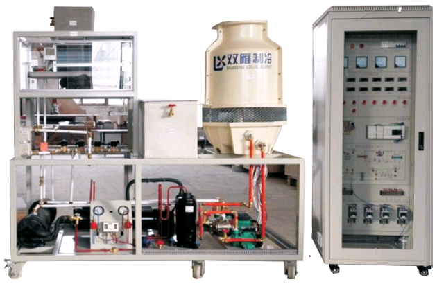 蓄冷空調(diào)制冷技術(shù)實(shí)訓(xùn)裝置是利用夜間低谷負(fù)荷電力制冰儲(chǔ)存在蓄冰裝置中,白天融冰將所儲(chǔ)存冷量釋放出來,減少電網(wǎng)高峰時(shí)段空調(diào)用電負(fù)荷及空調(diào)系統(tǒng)裝機(jī)容量,它代表著當(dāng)今世界中央空調(diào)的發(fā)展方向。該實(shí)訓(xùn)裝置是根據(jù)《蓄冷空調(diào)系統(tǒng)原理、工程設(shè)計(jì)及應(yīng)用》、《蓄能空調(diào)技術(shù)及其發(fā)展》等課程的實(shí)踐教學(xué)而開發(fā)設(shè)計(jì)的新型實(shí)訓(xùn)設(shè)備。整個(gè)裝置采用直接蒸發(fā)制冰系統(tǒng),系統(tǒng)主要由制冷機(jī)組、蓄冰裝置、空調(diào)末端裝置、空調(diào)循環(huán)水泵、乙二醇泵、載冷劑(乙烯乙二醇水溶液)等組成。適合各院�?照{(diào)工程專業(yè)、建筑環(huán)境與設(shè)備工程等專業(yè)相關(guān)課程的實(shí)訓(xùn)教學(xué)。