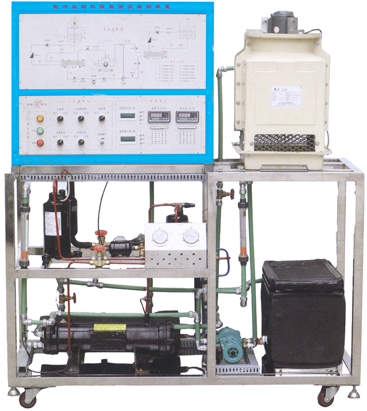 "制冷壓縮機性能測試實訓(xùn)設(shè)備"采用蒸汽壓縮式制冷循環(huán)系統(tǒng),配備全封閉式制冷壓縮機、冷凝器、蒸發(fā)器等制冷系統(tǒng)真實部件,并設(shè)有智能溫度調(diào)節(jié)儀、流量計、壓力表、電壓表、電流表等測量儀表。不但能開設(shè)制冷壓縮機性能參數(shù)的測定實訓(xùn),還能進行制冷循環(huán)基本原理的演示實訓(xùn)。適用于職業(yè)院校制冷專業(yè)相關(guān)課程的教學(xué)實訓(xùn)。