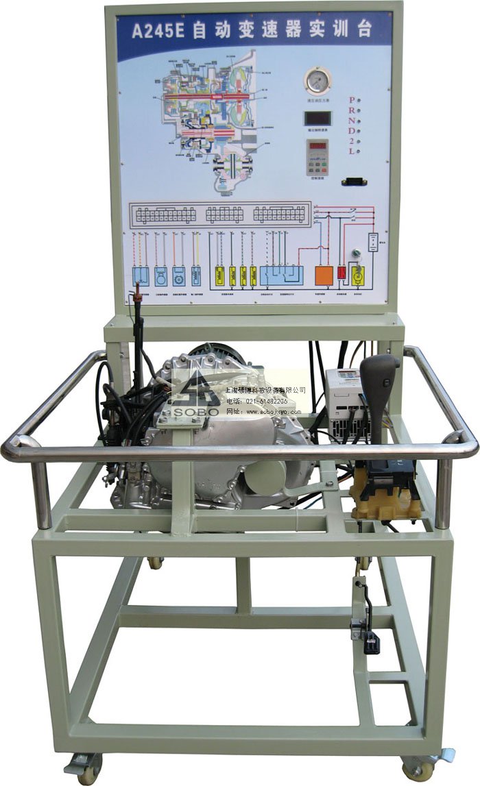 本變速器實(shí)訓(xùn)臺是本公司采用一汽豐田自花冠動變速器為適應(yīng)汽車教學(xué)需求而研制的,該實(shí)訓(xùn)臺由電控變速器(八成新)、操作顯示面板及發(fā)動機(jī)彩色電氣原理圖電腦控制柜、可移動式臺架(萬向腳輪)、驅(qū)動系統(tǒng)(腳踏式油門踏板)變頻電機(jī)驅(qū)動、剎車系統(tǒng)(腳踏液壓盤試剎車)、啟動系統(tǒng)(電門鎖方式啟動)、車速傳感器、電磁閥執(zhí)行器、原車電腦、具有發(fā)動機(jī)運(yùn)轉(zhuǎn)及顯示(轉(zhuǎn)速.車速.檔位)、液壓油壓力顯示表(顯示換檔過程油壓)、自動變速器電磁閥工作指示LED燈、原車OBD-Ⅱ診斷座、故障設(shè)置區(qū)可設(shè)置12路故障(老師設(shè)置任一路線路故障)、故障排除區(qū)(學(xué)生通過各種儀器、儀表、)在面板上用專用排故線連接排除故障、傳感器信號模擬等多項(xiàng)功能、具結(jié)構(gòu)緊湊、操作方便、安全可靠、教學(xué)直觀、是汽車自動變速器實(shí)物教學(xué)不可缺少的實(shí)驗(yàn)室設(shè)備之一。