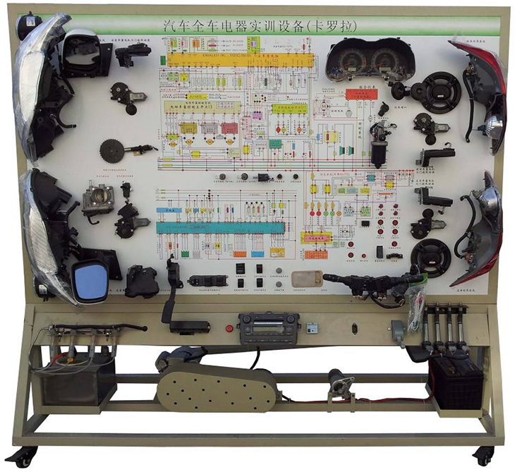 汽車電氣設(shè)備實訓(xùn)室。汽車電器設(shè)備實訓(xùn)室包含有汽車燈光系統(tǒng)、車載網(wǎng)絡(luò)系統(tǒng)、全車電器系統(tǒng)、汽車啟動系統(tǒng)、汽車空調(diào)系統(tǒng)、全車線路試驗臺、等實訓(xùn)教學(xué)設(shè)備。該實訓(xùn)室可以承擔(dān)《汽車構(gòu)造》、《汽車電器設(shè)備》、《汽車電控系統(tǒng)》、《汽車檢測與診斷》等課程的實踐教學(xué)任務(wù)。可以用于研究、分析全車電器系統(tǒng)、燈光系統(tǒng)、儀表系統(tǒng)等電器設(shè)備的電路及功能。利用這些系統(tǒng)進(jìn)行實踐教學(xué),使學(xué)生熟悉汽車電器的結(jié)構(gòu)和工作原理,掌握各個系統(tǒng)的基本組成電路,掌握主要電路的檢測方法和系統(tǒng)的故障特征,從而具有一定的檢測和調(diào)校能力。
