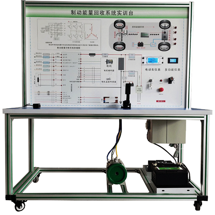 2.實現(xiàn)純電動車制動能量回收系統(tǒng)結(jié)構(gòu)及原理的認(rèn)知,可操作體驗制動能量回收系統(tǒng)的工作過程,可完成制動能量回收系統(tǒng)性能檢測,輔以發(fā)光二極管進(jìn)行系統(tǒng)能量流向的動態(tài)指示。