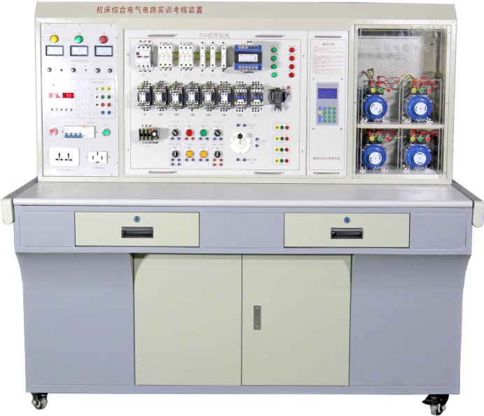 機(jī)床電氣控制實(shí)訓(xùn)室設(shè)備是機(jī)電設(shè)備維修與管理、電氣自動(dòng)化技術(shù)等專業(yè)學(xué)生的實(shí)訓(xùn)場(chǎng)所,通過實(shí)驗(yàn)、實(shí)訓(xùn),使學(xué)生掌握工廠常用的各類型設(shè)備的電路維護(hù)檢修。如鉆床控制電路、車床控制電路、銑床控制電路、磨床控制電路及鏜床控制電路等。主要產(chǎn)品有普通車床、萬能銑床、萬能外圓磨床實(shí)訓(xùn)考核裝置,可開展機(jī)床常用電器及選擇、機(jī)床繼電器控制電路的基本環(huán)節(jié)、典型機(jī)床繼電器控制系統(tǒng)的分析和設(shè)計(jì)方法、機(jī)床維修等實(shí)訓(xùn)內(nèi)容。機(jī)床電氣控制實(shí)訓(xùn)室設(shè)備面向?qū)I(yè)、機(jī)電一體化技術(shù)、機(jī)械制造與自動(dòng)化、電氣自動(dòng)化技術(shù)專業(yè) 、實(shí)訓(xùn)目的、通過實(shí)驗(yàn)實(shí)訓(xùn)使學(xué)生掌握典型機(jī)床電氣控制系統(tǒng)的安裝、調(diào)試及維護(hù)的操作技能,提高學(xué)生的動(dòng)手能力。本實(shí)訓(xùn)室還可用高級(jí)維修電工技能鑒定的培訓(xùn)和考核。 機(jī)床電氣技能實(shí)訓(xùn)考核鑒定裝置、主要實(shí)訓(xùn)項(xiàng)目及功能 、主要承擔(dān)《機(jī)床電氣控制系統(tǒng)運(yùn)行與維護(hù)》、《常用電氣設(shè)備控制檢修與維護(hù)》、《高級(jí)維修電工考證培訓(xùn)》等課程實(shí)訓(xùn)、實(shí)驗(yàn)教學(xué)以及相關(guān)的職業(yè)技能鑒定,可開展實(shí)訓(xùn)項(xiàng)目: CA6140車床電氣控制線路的安裝、調(diào)試及維護(hù)。 X62W萬能銑床電氣控制線路的安裝、調(diào)試及維護(hù)。 Z3040搖臂鉆床電氣控制線路的安裝、調(diào)試及維護(hù)。 電動(dòng)葫蘆電氣控制線路的安裝、調(diào)試及維護(hù)。 職業(yè)技能培訓(xùn)及鑒定、考證。 機(jī)床電氣技能實(shí)訓(xùn)考核裝置、C6140 普通車床電氣技能實(shí)訓(xùn)考核裝置(半實(shí)物)、M1432 萬能外圓磨床電氣技能實(shí)訓(xùn)考核裝置(半實(shí)物)、M7120 平面磨床電氣技能實(shí)訓(xùn)考核裝置(半實(shí)物)|網(wǎng)絡(luò)型平面磨床電氣技能實(shí)訓(xùn)智能考核裝置、PDH 電動(dòng)葫蘆電氣技能實(shí)訓(xùn)考核裝置(半實(shí)物)、機(jī)床電氣技能實(shí)訓(xùn)考核鑒定裝置、T68 臥室鏜床電氣技能實(shí)訓(xùn)考核裝置(半實(shí)物)、X62W 型萬能銑床電氣技能實(shí)訓(xùn)考核裝置 ( 半實(shí)物 )、Z3040 搖臂鉆床電氣技能實(shí)訓(xùn)考核裝置(半實(shí)物)、C650-2 普通車床電氣技能培訓(xùn)考核實(shí)驗(yàn)裝置|網(wǎng)絡(luò)型普通車床電氣技能實(shí)訓(xùn)智能考核裝置、M7130K型 平面磨床電氣技能培訓(xùn)考核實(shí)驗(yàn)裝置、網(wǎng)絡(luò)型平面磨床電氣技能實(shí)訓(xùn)智能考核裝置、PBA龍門刨床電氣技能培訓(xùn)考核實(shí)驗(yàn)裝置、網(wǎng)絡(luò)型龍門刨床電氣技能實(shí)訓(xùn)智能考核裝置、綜合機(jī)床電氣電路實(shí)訓(xùn)考核鑒定裝置(四個(gè)機(jī)床電路)、 綜合機(jī)床電氣電路實(shí)訓(xùn)考核鑒定裝置(四個(gè)機(jī)床電路)、T68 臥式鏜床實(shí)訓(xùn)及技能考核裝置、網(wǎng)絡(luò)型臥式鏜床電氣技能實(shí)訓(xùn)智能考核裝置、機(jī)床電氣控制技術(shù)及工藝實(shí)訓(xùn)考核裝置、機(jī)床電氣實(shí)驗(yàn)臺(tái)、網(wǎng)孔型萬能機(jī)床電路實(shí)訓(xùn)考核鑒定裝置、網(wǎng)孔型萬能機(jī)床電路實(shí)訓(xùn)考核鑒定裝置(含 PLC 、變頻器)、X62W萬能銑床實(shí)訓(xùn)及技能考核裝置、網(wǎng)絡(luò)型萬能銑床電氣實(shí)訓(xùn)智能考核裝置、Z3040B搖臂鉆床電氣技能培訓(xùn)考核實(shí)驗(yàn)裝置、網(wǎng)絡(luò)型搖臂鉆床電氣技能實(shí)訓(xùn)智能考核裝置、機(jī)床電氣電路仿真實(shí)訓(xùn)考核裝置、機(jī)床電器電路實(shí)驗(yàn)臺(tái)、網(wǎng)絡(luò)化智能型機(jī)床電氣技能實(shí)訓(xùn)考核裝置。