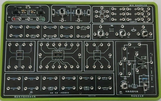 模擬電子技術(shù)實驗箱,模擬電子技術(shù)實驗系統(tǒng)是結(jié)合模擬、數(shù)字電路兩門課程的實驗教學特點,參照現(xiàn)有的教學實驗產(chǎn)品,由華北電力大學老師提出設(shè)計方案并改進而來的。此款產(chǎn)品借鑒了國內(nèi)主流產(chǎn)品的設(shè)計特點,總結(jié)學校在實驗課程中發(fā)現(xiàn)的問題,有針對性的加以解決。產(chǎn)品本著實驗設(shè)計型提高學生的動手能力培養(yǎng)、產(chǎn)品牢固型提高產(chǎn)品的皮實驗程度不易損壞、操作靈活型產(chǎn)品使用靈活保管方便。