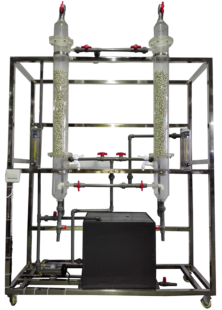 反應(yīng)塔、穩(wěn)流閥、臭氧發(fā)生器、低噪聲充氧泵、瓷拉西環(huán)填料、液體流量計、氣體流量計、配水箱、水泵、電路控制系統(tǒng)、不銹鋼可移動框架、控制屏。
