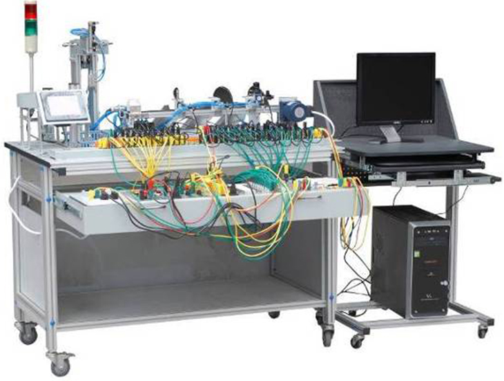 實(shí)訓(xùn)裝置由由鋁合金導(dǎo)軌式實(shí)訓(xùn)臺(tái)、典型的機(jī)電一體化設(shè)備的機(jī)械部件、PLC模塊、變頻器模塊、按鈕模塊、電源模塊、模擬生產(chǎn)設(shè)備實(shí)訓(xùn)模塊、接線端子排和各種傳感器、計(jì)算機(jī)等組成。整體結(jié)構(gòu)采用開(kāi)放式和拆裝式,實(shí)訓(xùn)裝置用于機(jī)械部件組裝,可根據(jù)現(xiàn)有的機(jī)械部件組裝生產(chǎn)設(shè)備,也可添加機(jī)械部件組裝其他生產(chǎn)設(shè)備,使整個(gè)裝置能夠靈活的按教學(xué)或競(jìng)賽要求組裝具有生產(chǎn)功能的機(jī)電一體化設(shè)備。模塊采用標(biāo)準(zhǔn)結(jié)構(gòu)和抽屜式模塊放置架,互換性強(qiáng);同時(shí)還要求具有可拓展功能,可以組成更加大型的生產(chǎn)模擬系統(tǒng),以配合各個(gè)用戶學(xué)校不同層次,不同專業(yè)的教學(xué)及培訓(xùn)要求。