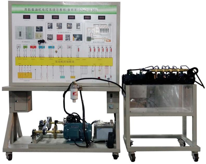 1.真實可運行的共軌柴油發(fā)動機燃油噴射系統(tǒng),充分展示燃油噴射系統(tǒng)的組成結構和工作過程。電機驅動曲軸位置信號輪,可演示電子燃油噴射工作情況。