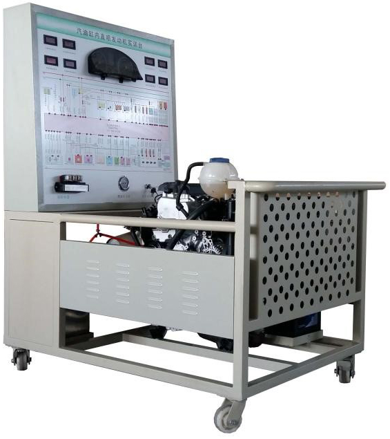 該設(shè)備采用翻新大眾直噴1.4 TSI電控汽油發(fā)動(dòng)機(jī)總成及運(yùn)行附件的固定臺(tái)架和運(yùn)行檢測(cè)控制面板臺(tái)架兩部分組成。
