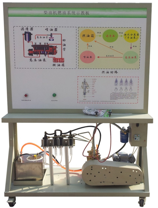 2.示教板面板采用耐創(chuàng)擊、耐污染、防火、防潮的高級(jí)鋁塑板,表面經(jīng)特殊工藝噴涂底漆處理;面板打印有永不褪色的彩色電路圖與工作原理示意圖;學(xué)員可直觀對(duì)照電路圖和實(shí)物,認(rèn)識(shí)和分析柴油發(fā)動(dòng)機(jī)燃油噴射系統(tǒng)的工作原理。