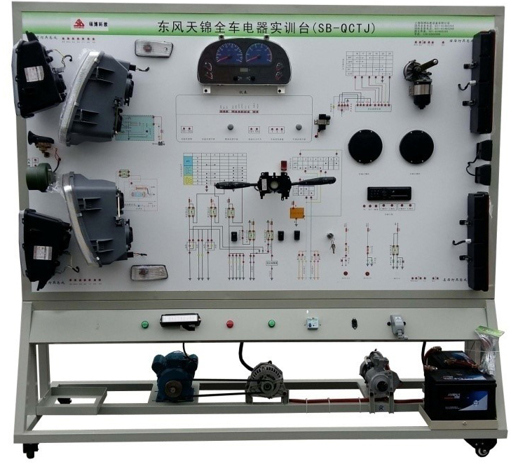 電器電路實(shí)訓(xùn)臺(tái)(東風(fēng)天錦運(yùn)輸車電器電路實(shí)驗(yàn)臺(tái))該設(shè)備采用全新 東風(fēng)天錦 柴油機(jī)整車電器實(shí)物為基礎(chǔ),充分展示汽車儀表系統(tǒng)、燈光系統(tǒng)、雨刮系統(tǒng)、喇叭系統(tǒng)、發(fā)動(dòng)機(jī)電器系統(tǒng)、起動(dòng)系統(tǒng)和充電系統(tǒng)等汽車電器各系統(tǒng)的組成結(jié)構(gòu)和工作過(guò)程。