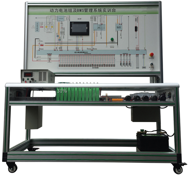 動(dòng)力電池管理系統(tǒng)實(shí)訓(xùn)臺(tái)選用新能源車輛磷酸鐵鋰 動(dòng)力電池包,單體電池(3.2V20AH,共24串),帶CAN總線的一體機(jī)BMS電池管理系統(tǒng),有被動(dòng)均衡功能;真實(shí)地呈現(xiàn)了磷酸鐵鋰動(dòng)力電池包核心零部件之間的連接控制關(guān)系、安裝位置和運(yùn)行參數(shù),以及高壓系統(tǒng)安全注意事項(xiàng),并培養(yǎng)學(xué)員對(duì)磷酸鐵鋰動(dòng)力電池包(BMS)故障分析和處理能力。適用于了解與驗(yàn)證電動(dòng)汽車的動(dòng)力電池參數(shù)進(jìn)行實(shí)時(shí)監(jiān)控、故障診斷、SOC估算、短路保護(hù)、絕緣檢測、充放電控制、均衡等功能,并通過CAN總線的方式與帶CAN通訊的車載充電機(jī)進(jìn)行信息交互,保障電動(dòng)汽車高效、可靠、安全運(yùn)行的BMS教學(xué)實(shí)訓(xùn)實(shí)驗(yàn)。