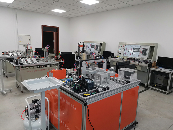機電一體化實驗實訓裝置、PLC與自動化實驗實訓室設備自動化生產(chǎn)線實訓室、氣動控制實訓室、伺服控制實訓室、過程控制實訓室、仿真控制實訓室、自動化創(chuàng)新工作室等;能提供可編程控制技術、交流伺服驅動技術、人機界面技術、多自由度機械臂技術、網(wǎng)絡控制技術、自動化物流管理、虛擬仿真等自動化領域核心技術的實踐訓練;教學項目涵蓋單項技能訓練、綜合技能提升、創(chuàng)新設計能力培養(yǎng)、自動化新技術應用等多個層面,為滿足學生技能訓練、教師實踐能力培養(yǎng)、企業(yè)員工培訓、技術研發(fā)與服務提供了有力保障。機電一體化實驗實訓平臺、PLC與自動化實訓室設備是《PLC控制技術》、《變頻器控制技術》、《組態(tài)控制技術》等課程的教學實驗實訓、課程設計、自動化綜合實訓及創(chuàng)新設計等實踐基地,也是技能培訓的教學平臺。滿足學生進行PLC實訓、課程設計、畢業(yè)設計等需求。機電一體化實驗實訓平臺、PLC與自動化實訓室設備主要功能是為學生提供可編程邏輯控制器(PLC)的相關實訓與實訓操作環(huán)境,幫助學生深入理解PLC的工作原理、編程方法、以及在工業(yè)自動化領域的應用。