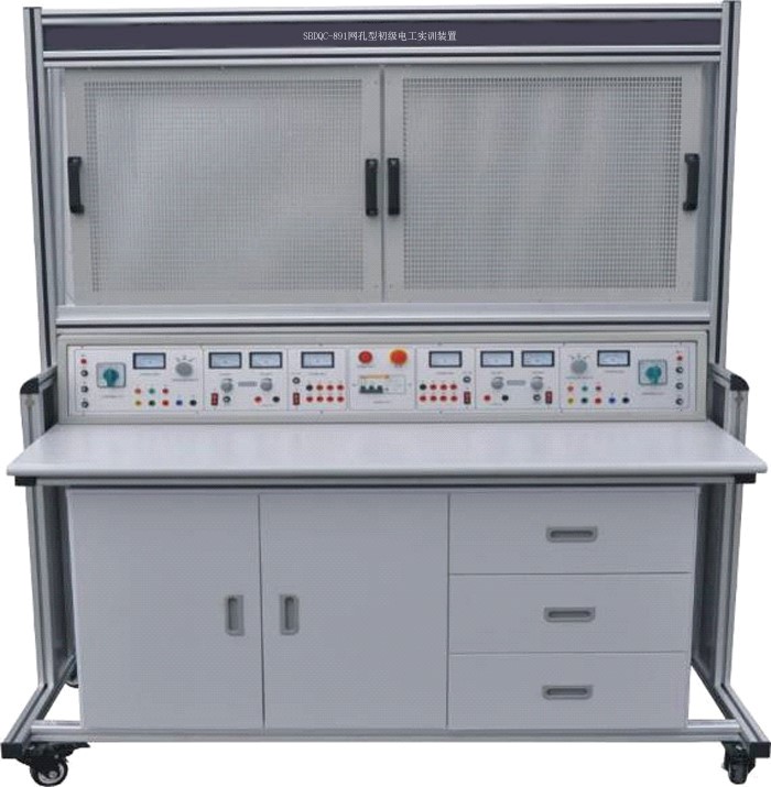 初級維修電工實訓(xùn)室設(shè)備可作為維修電工考核裝置,有可在網(wǎng)孔板上進行照明器件及線路的安裝,電工儀表測量線路的安裝、電工儀表測量線路的安裝、配電盤的裝配訓(xùn)練,電動機的控制線路安裝訓(xùn)練。