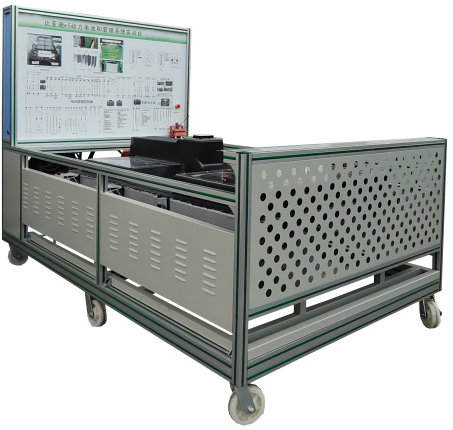 (比亞迪e5 EV300純電動汽車) 鋰動力電池組、電池管理系統(tǒng)BMS、BMS顯示屏(7寸觸摸屏)、維修開關(guān)、輔助蓄電池(12V45AH)、高壓配電箱、漏電傳感器、車載充電機、國標充電插座與充電槍、直流接觸器(包含充電繼電器、總正繼電器、總負繼電器、預(yù)充繼電器)、急停開關(guān)與電源總開關(guān)、一體化全鋁合金型材搭建的移動臺架(1500×700×1700mm ,帶自鎖腳輪裝置,帶安裝檢測端子的原理面板1448×940mm)、故障考核系統(tǒng)、設(shè)備操作說明書。